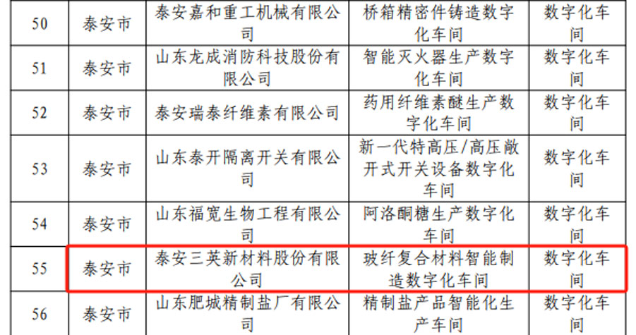 8月12日,山東省工業(yè)和信息化廳公布了2024年省級智能工廠、數(shù)字化車間及智能制造場景名單,我公司“玻纖復合材料智能制造數(shù)字化車間”入選山東省數(shù)字化車間,“質(zhì)量精 準追溯”入選山東省智能制造場景。